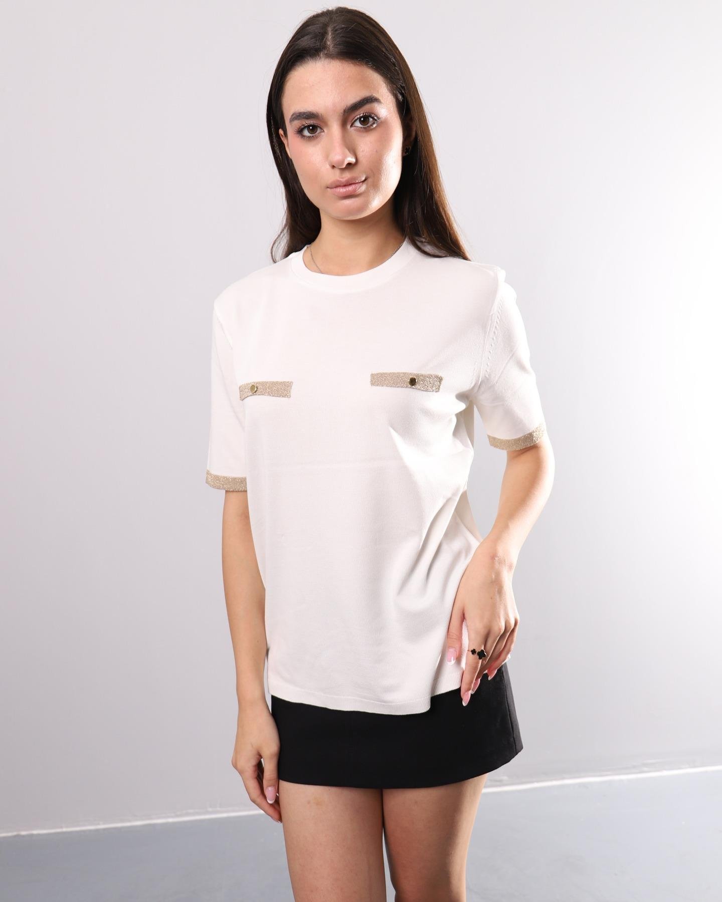 356 Flato Cepli Simli Kısa Kol Triko Bluz