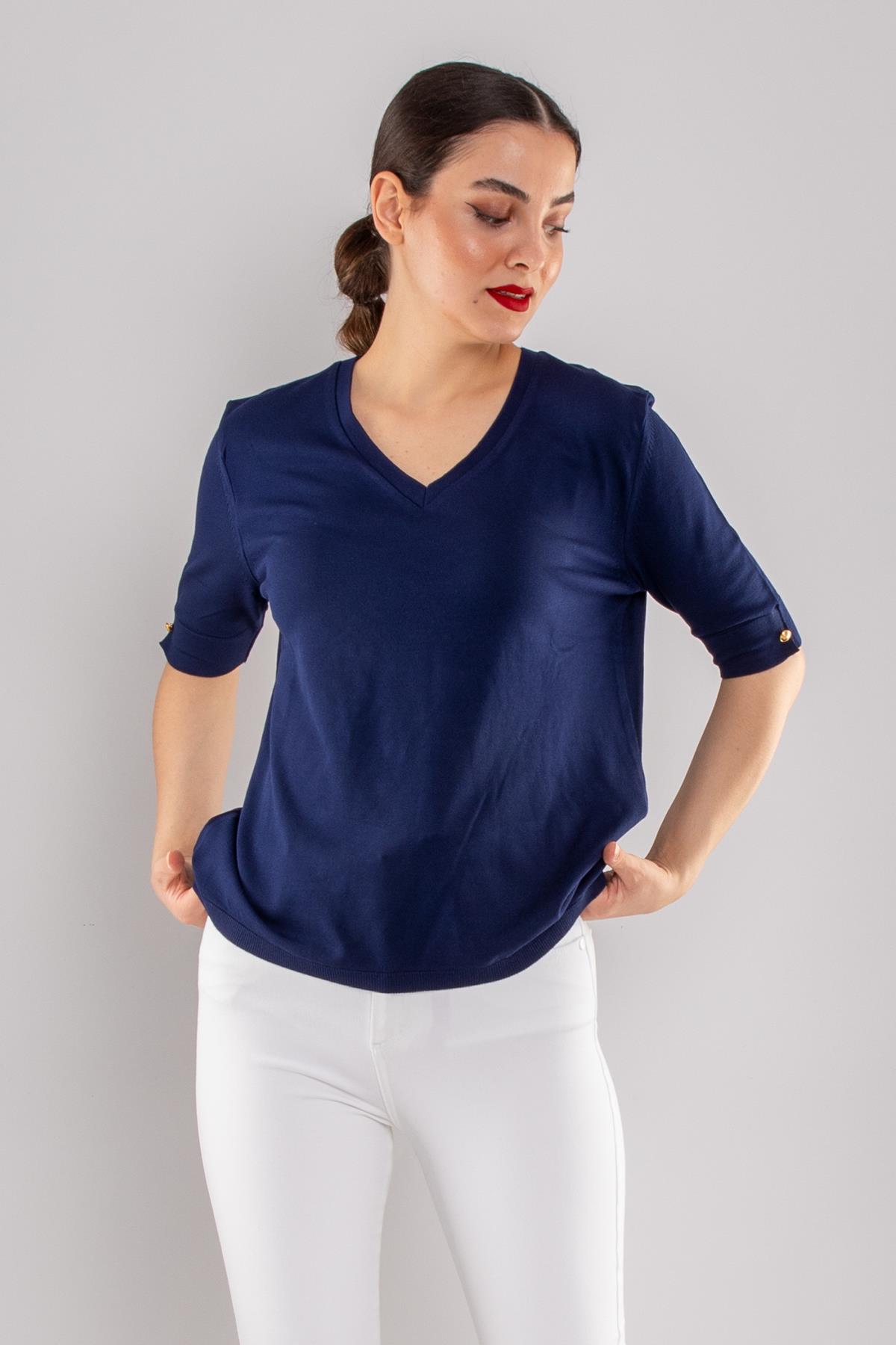 817 Vyaka Kol Uçları Düğmeli Kısa Kol Merserize Kadın Triko